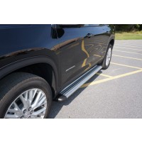 In terms of design, Romik running boards give an air of elegance and roughness to the Acadia's strong stance and streamlined lines. They also contribute to keeping the Acadia's elegant appearance by providing additional protection for the sides of the car from road debris.